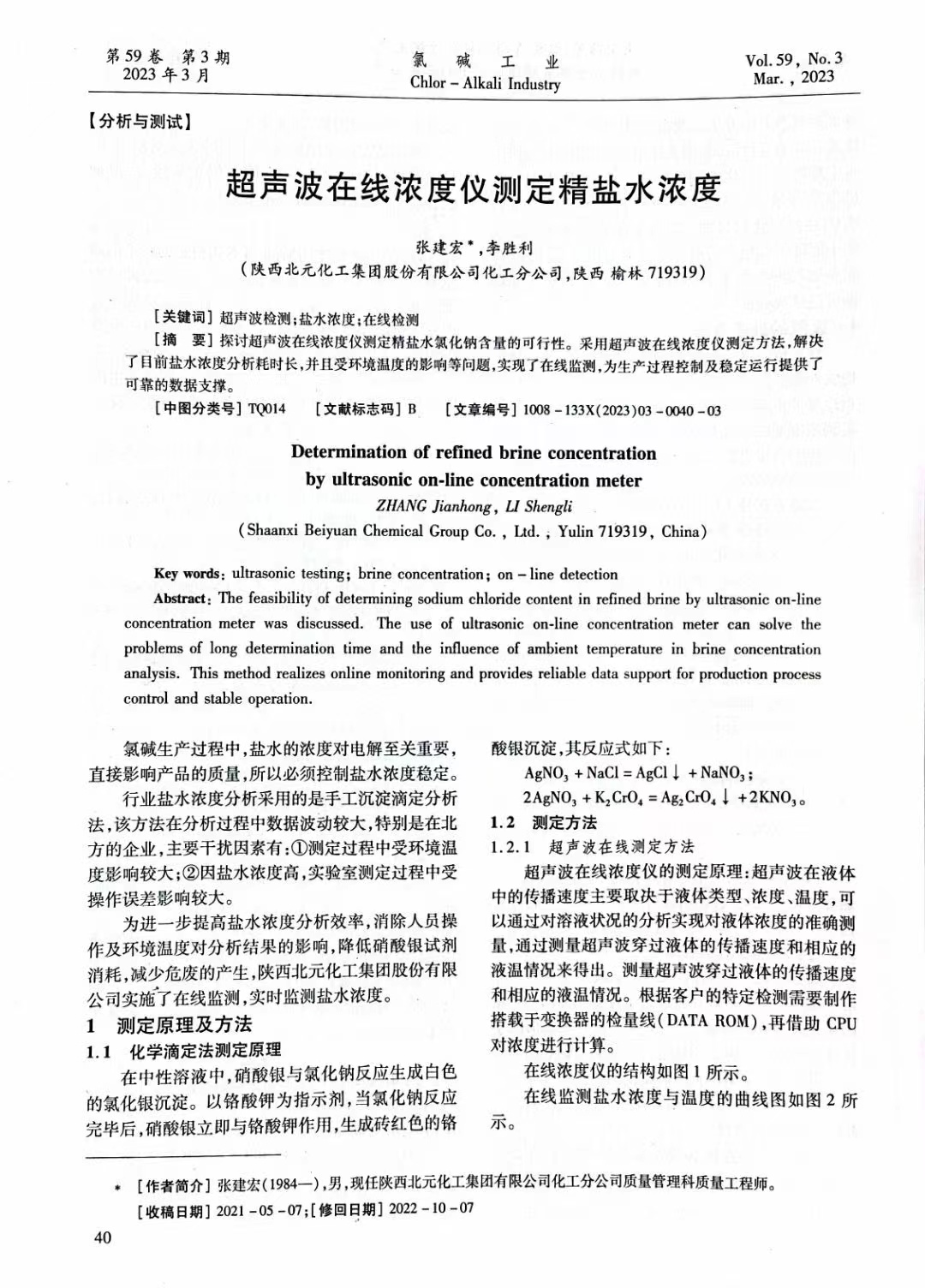 news center我司客戶陜西北元化工集團(tuán)有限公司化工分公司質(zhì)量管理科質(zhì)量工程師-張建宏在氯堿工業(yè)期刊中發(fā)表論文。詳細(xì)剖析超聲波在線濃度儀測(cè)定精鹽水氯化鈉含量的可行性。采用超聲波在線濃度儀進(jìn)行在線分析后,為生產(chǎn)提供實(shí)時(shí)準(zhǔn)確的數(shù)據(jù)分析,便于生產(chǎn)工藝及時(shí)調(diào)控和生產(chǎn)過(guò)程的穩(wěn)定運(yùn)行。以下為論文內(nèi)容: